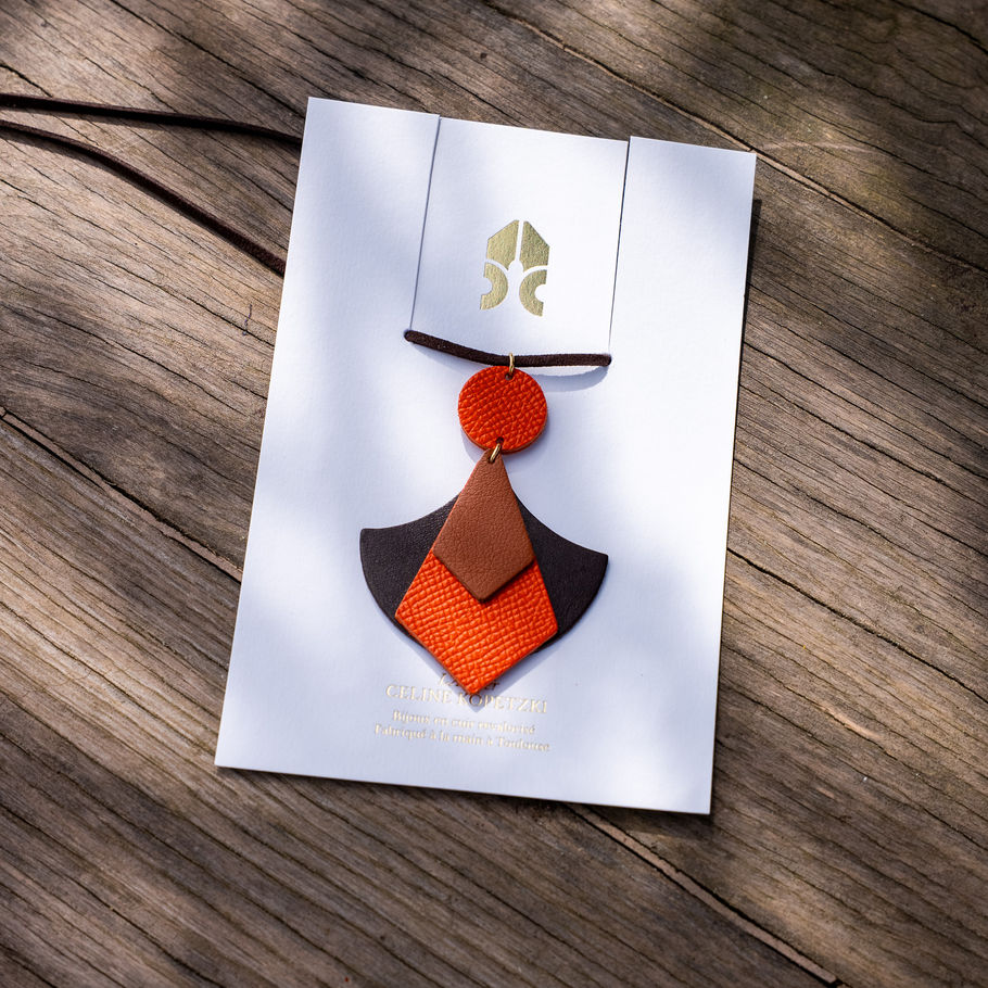 Chaque sautoir est façonné à la main à Toulouse en cuir revalorisé, sélectionné pour la richesse de sa texture, la profondeur de sa matière et la subtilité de ses reflets. Selon le coloris, la lumière révèle tantôt une élégance mate, tantôt un éclat délicatement irisé, donnant à chaque pièce une présence singulière.